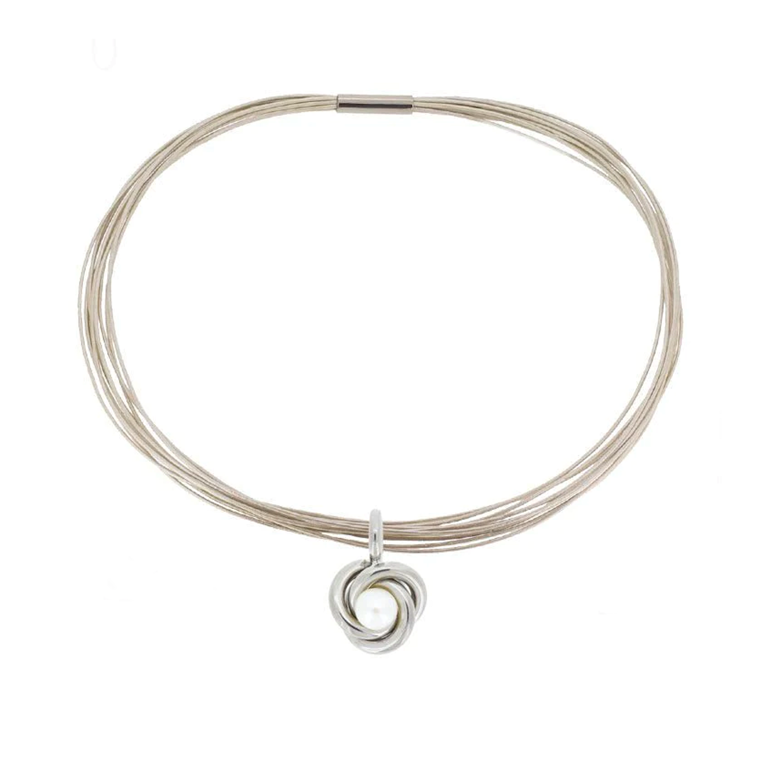 Titanium pendant with pearl and leather necklace with magnetic titanium lock